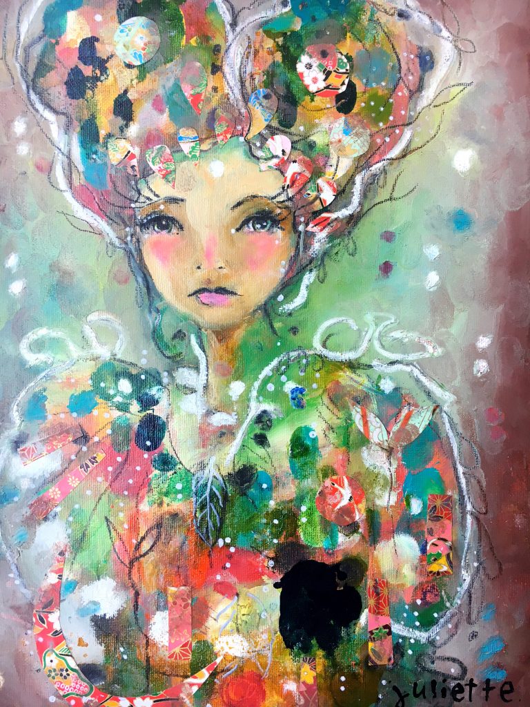When I want to add more depth to my eyes, I make a mess of what’s already there. I cover up my lines with paint pen, drip water on top, then add more water-soluble pencil smudges, wispy lines and dots at the lashes. This creates softness (and beautiful mistakes). The other day when this happened, I was in the middle of this new painting (she’s... Continue reading
