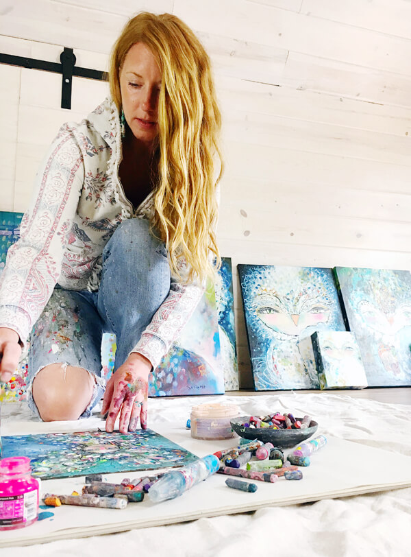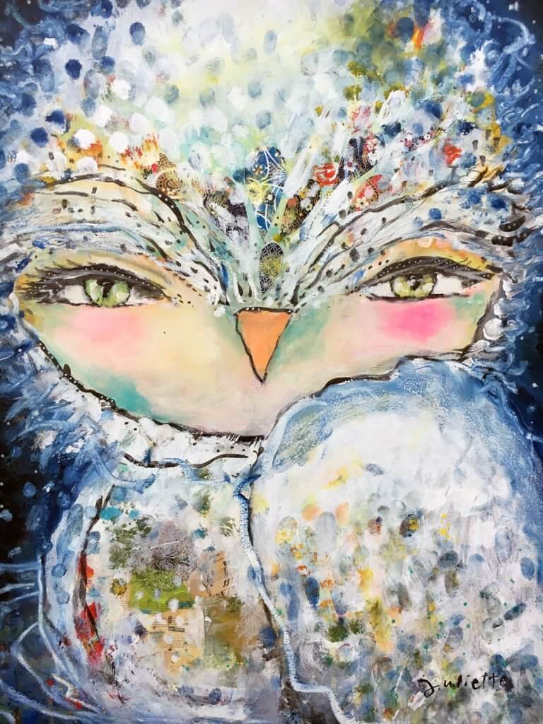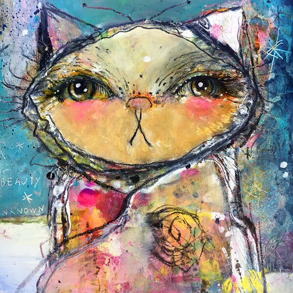 Most of my paintings begin with the eyes, but they are always the hardest thing to paint and I can never stop until they resonate with my soul. I begin with a few colored fingerprints on a solid background. Then add in my eye outline and definition with water-soluble pencil. Next, I go back in with more color and a little white paint pen on... Continue reading