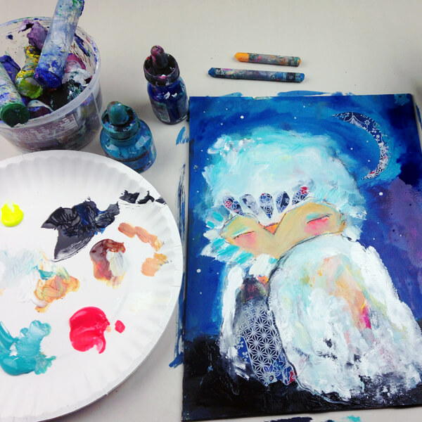 If I’m feeling really frustrated with my paintings, I’ll layer at least three new colors or different supplies. This is one of the easiest ways to give depth to a paintiing as I cover up the parts I don’t like. I start in the background, mixing a little acrylic paint with acrylic ink, then scribble some water-soluble oil pastels on top. As I play, I... Continue reading