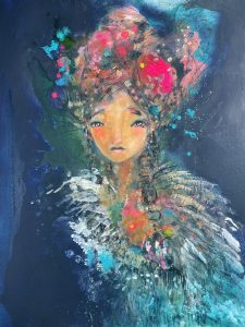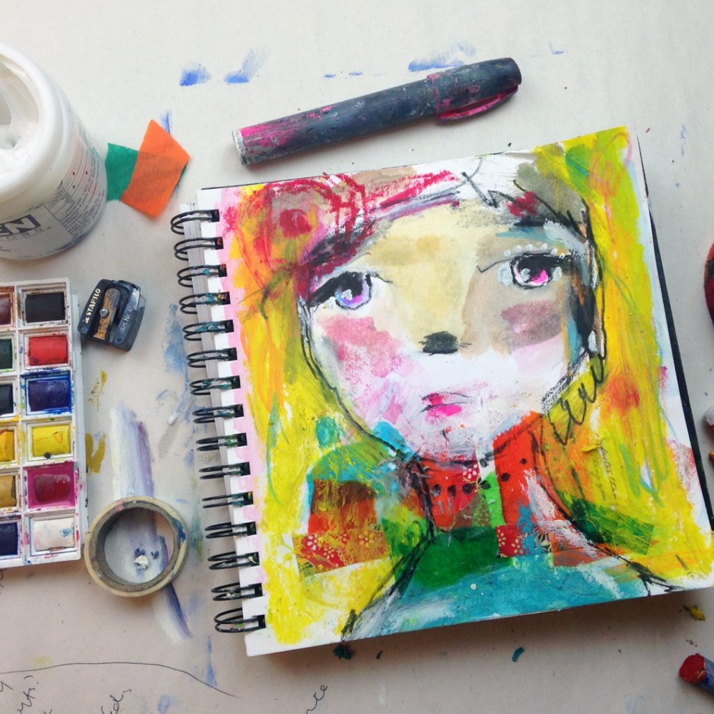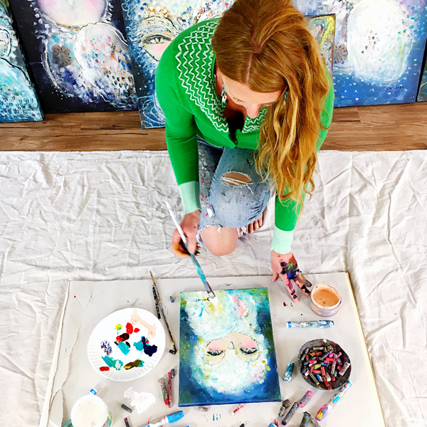 It’s all about playful color, so we’re painting faces with freedom and joy — trusting our intuition and seeing where the layers want to take us.
