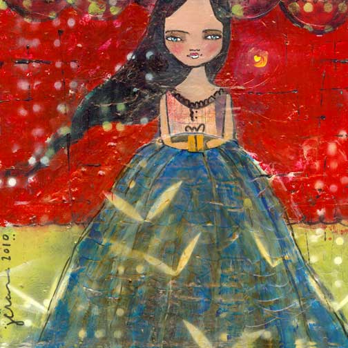 juliette, she is fabulous! i just received Spring and the Book Dress and couldn't be more delighted. I can't wait to put her on the wall. The colors are fantastic. I'm even keeping the envelope for my inspiration board–you did such a good job on that too (and I love being called beautiful:)! I didn't know you were a writer. My “real job” with my Enlish degree is a writer–freelance. I used to be a medical writer for our local children's hospital. My dream is to write picture books someday! Cool that we have that in common too!
