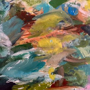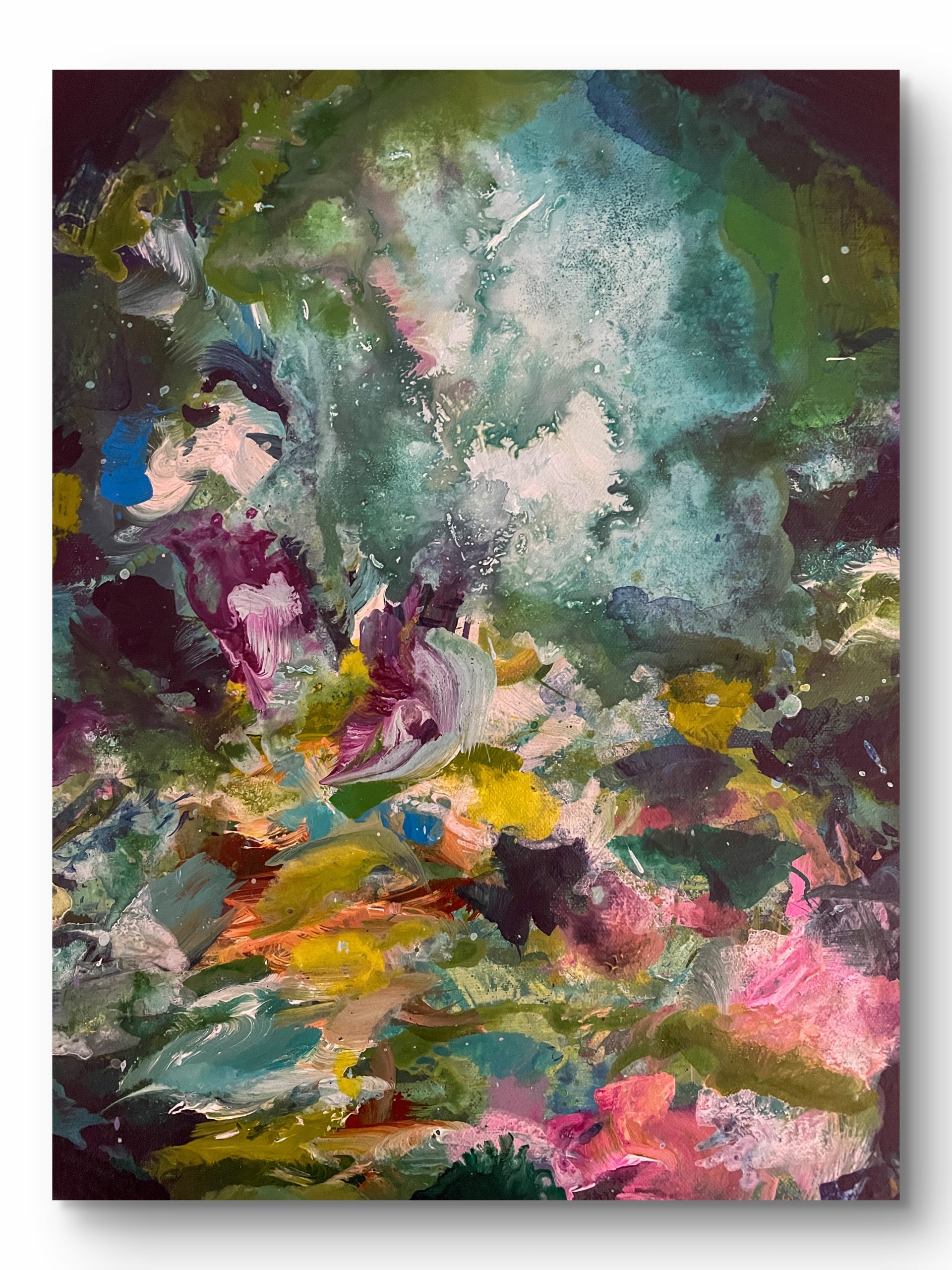 This is an original 11″ x 14″ acrylic painting by artist, Juliette Crane. The painting is on stretched gallery canvas with 1 3/8″ sides, so the painting continues around the edges and is ready to hang, with or without a frame.