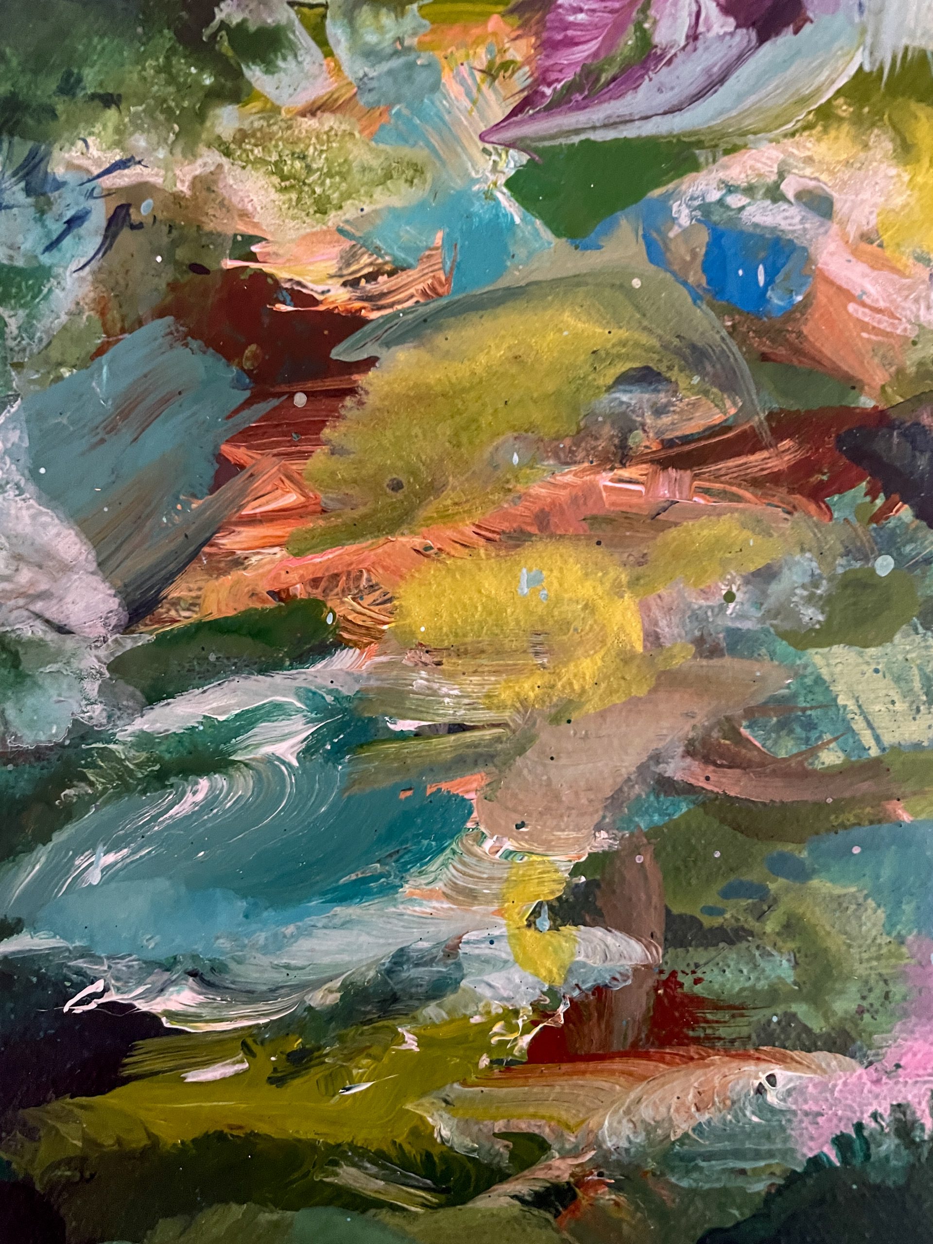 This is a small study for a larger piece. It’s inspired by the changing of seasons and new beginnings. The fall colors have been melting my heart! Like living in a painting.