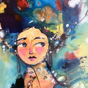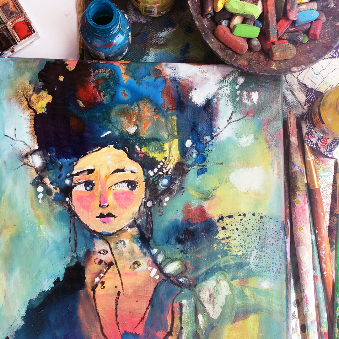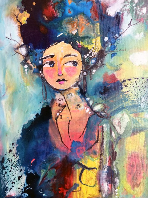 This is an original 11″ x 14″ mixed media painting on stretched canvas by artist, Juliette Crane. *Frame is not included*
